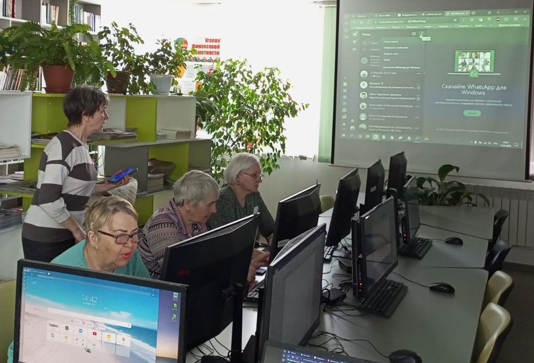 В период с 17 марта по 9 апреля в Секторе информационных технологий прошёл цикл информационно-просветительских мероприятий по компьютерной и финансовой грамотности для пенсионеров. Присутствующие получили навыки работы в приложении WhatsApp и WhatsAppWeb, работы в Яндекс браузере (переводчике, карте, умной камере, поисковике...) и портале "Госуслуги".