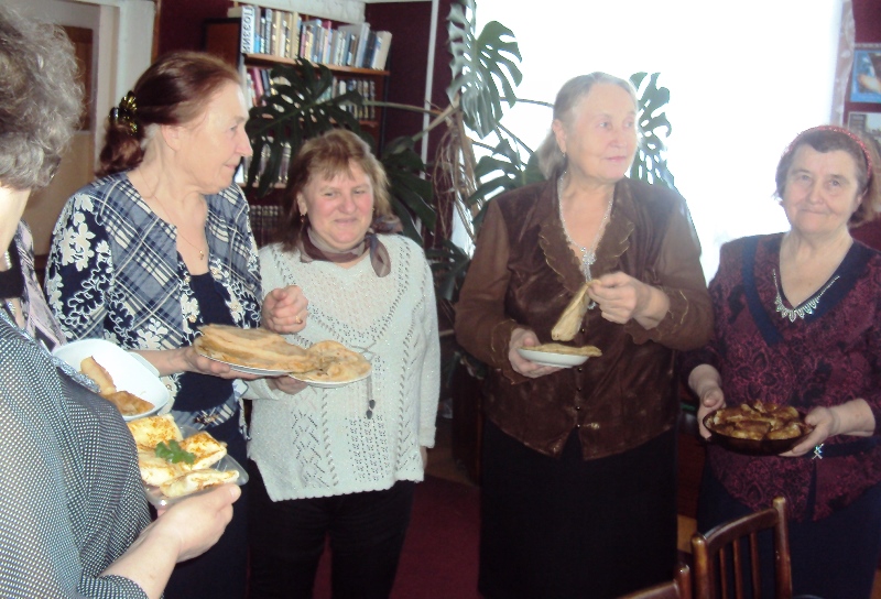 Библиотекари С.П. Катанахова и Л.К. Першина рассказали об истории праздника. Затем все присутствующие состязались в кулинарном конкурсе "Блиночки разные бывают", получив за участие поощрительные призы.