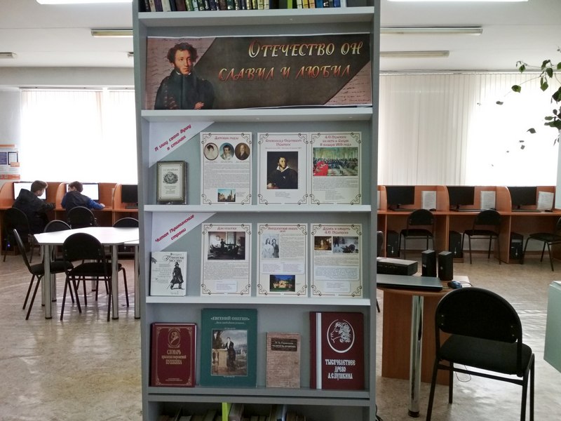К дню рождения русского писателя А.С. Пушкина в читальном зале БЭЦ организована книжная выставка «Отечество он славил и любил». На ней представлены произведения А.С. Пушкина, а также воспоминания о великом поэте его современников.