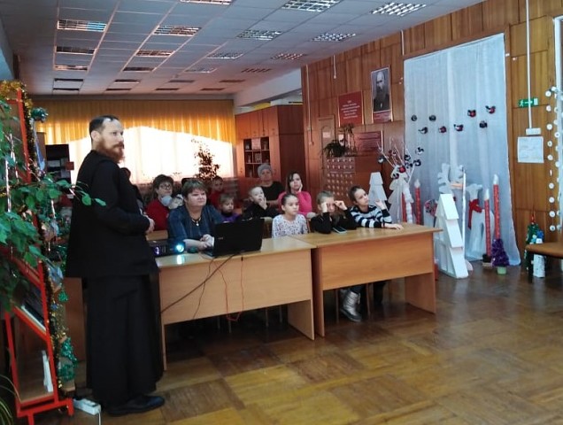 Жители села Больше-Дорохово, пришедшие на праздничный Рождественский молебен, смогли посетить выставку "Благодати Рождество" в библиотеке-филиале №16. Священник иерей Павел Волковский рассказал присутствующим, что изображено на иконе в честь праздника Рождества Христова и ответил на заданные вопросы.