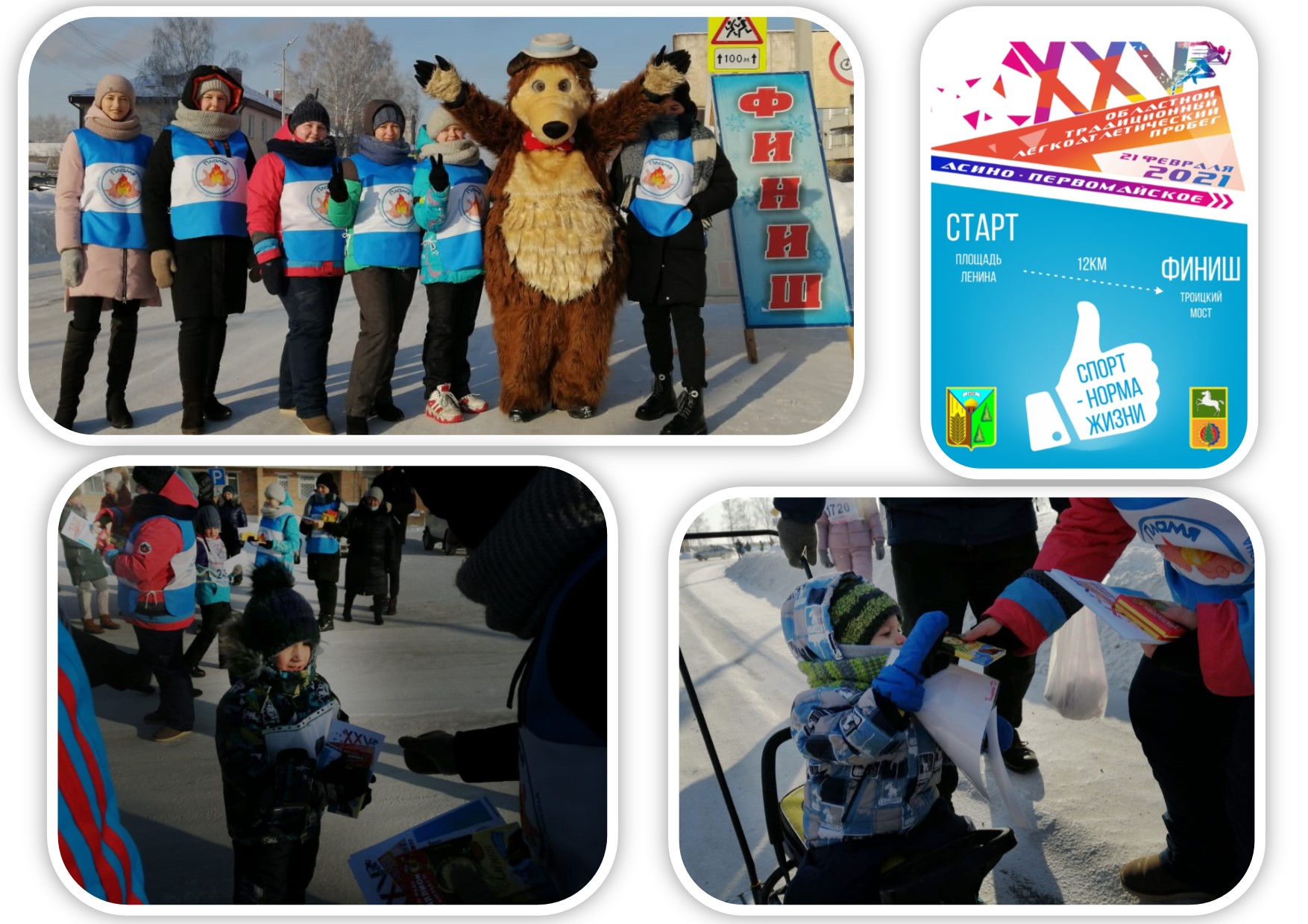 Несмотря на настоящий сибирский мороз, 21 февраля состоялся юбилейный ХXV областной легкоатлетический пробег Асино — Первомайское, посвященный Дню защитника Отечества, в котором приняли участие порядка 300 асиновцев, первомайцев и томичей.