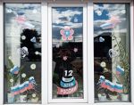 В рамках акции "Окна России" ученики 5-6 классов украсили окна библиотеки.