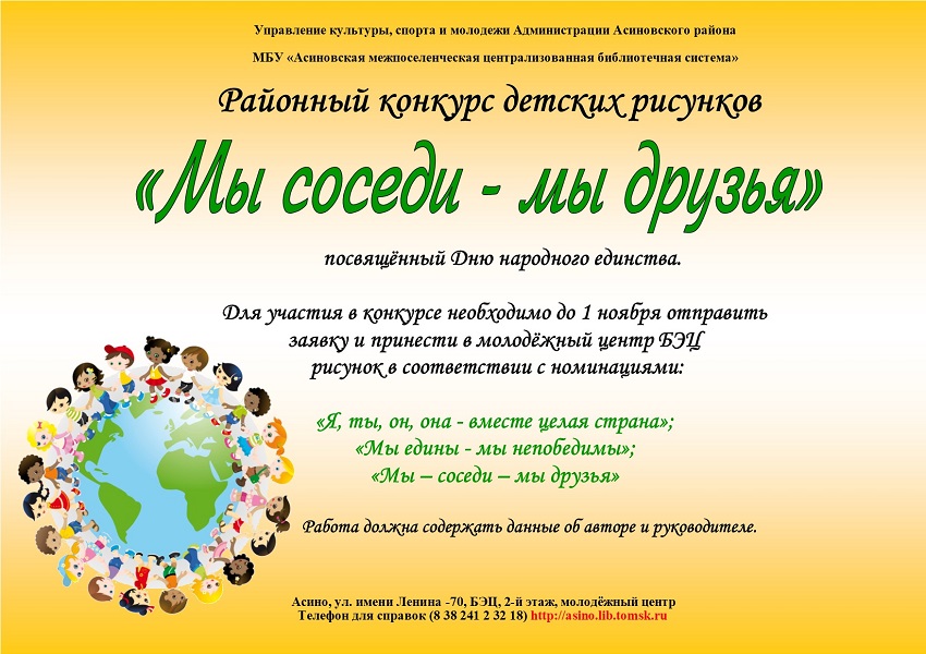 Приглашаем к участию в ежегодном районном конкурсе детских рисунков "Мы соседи - мы друзья".