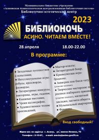 28 апреля с 18-00 до 22-00 Библиотечно-эстетический центр приглашает жителей и гостей города Асино на ежегодную акцию «Библионочь».