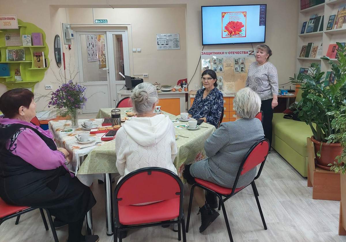 В библиотеке с. Больше-Дорохово коллеги-педагоги встретились за чашкой чая и поделились теплыми воспоминаниями о работе и первом опыте в профессии.