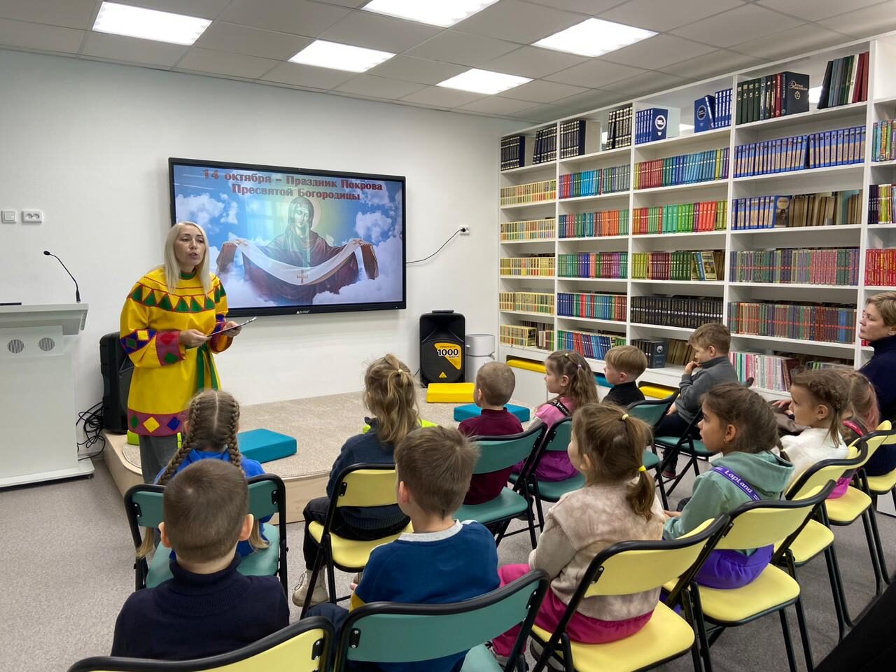 В этот день в Детской библиотеке для ребят из детского сада "Белочка" прошел час русской традиции "Теплый свет Покрова". Сотрудники библиотеки познакомили гостей с историей происхождения праздника, рассказали о его значении в жизни русского народа. Продолжилось мероприятие фольклорной игровой программой, где ребята узнали о приметах и обычаях православного праздника, а также приняли участие в веселых играх.
