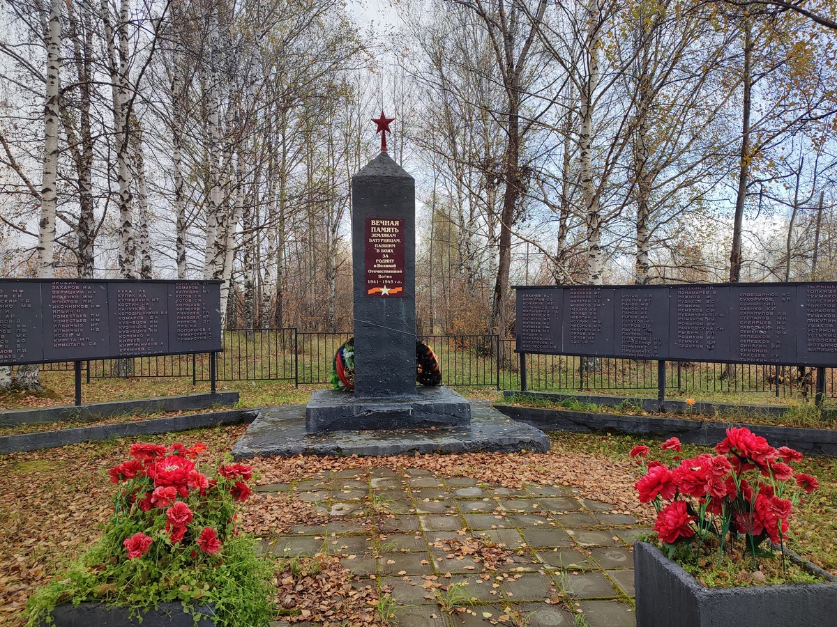 Заложен в 1969 году по инициативе жителей. Ученики Батуринской школы шестидесятых годов, пионеры и комсомольцы, собирали и сдавали дикоросы, чтобы на вырученные с их продажи деньги создать мемориал, который открыли в 1971 году. Памятник создавался при непосредственном участии директора Батуринской судоверфи Яблокова, председателя поселкового совета П. И. Мартынюка, мастера ДОКа В. В. Антинга. Выполнен из металлического каркаса, залитого цементом. Отливал Дмитрий Бережнёв.