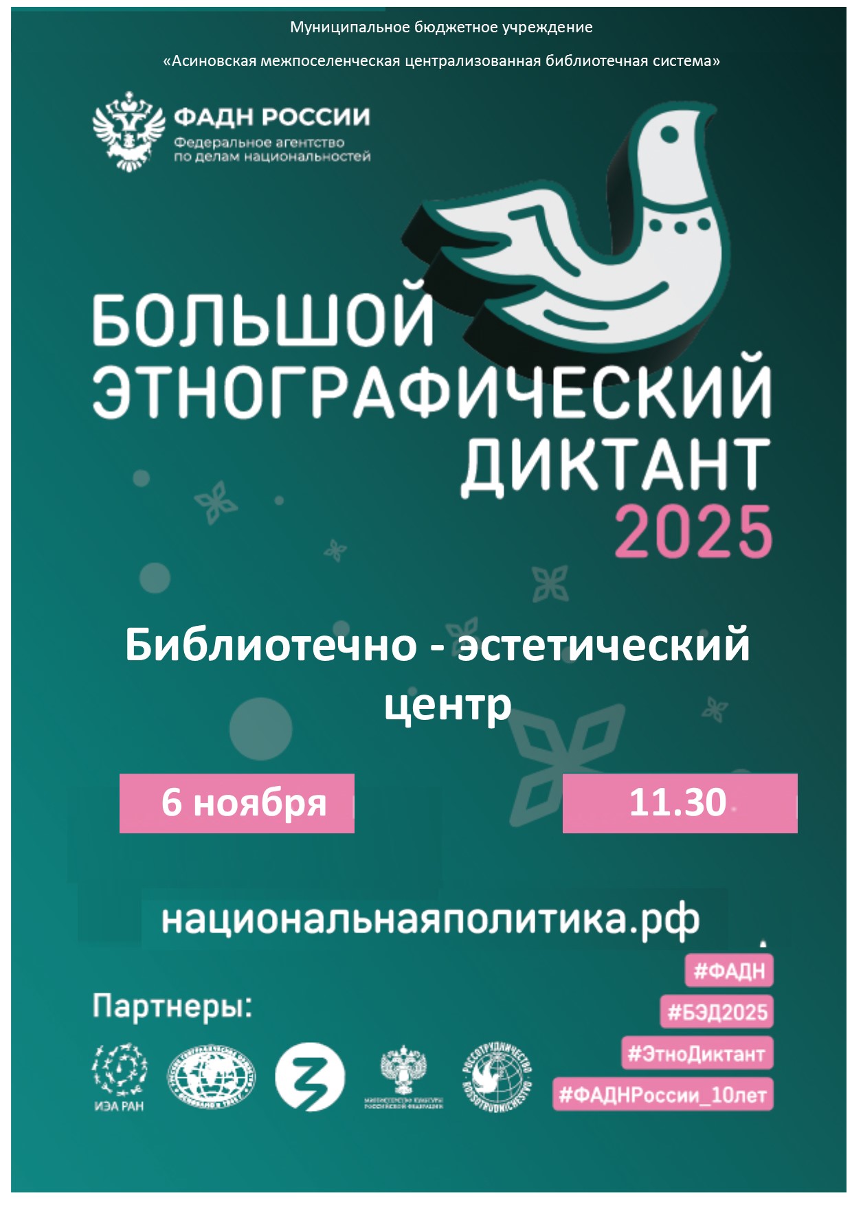 6 ноября 2025 г. приглашаем всех желающих для участия в Большом этнографическом диктанте на открытую площадку в БЭЦ (ул. имени Ленина, 70).
