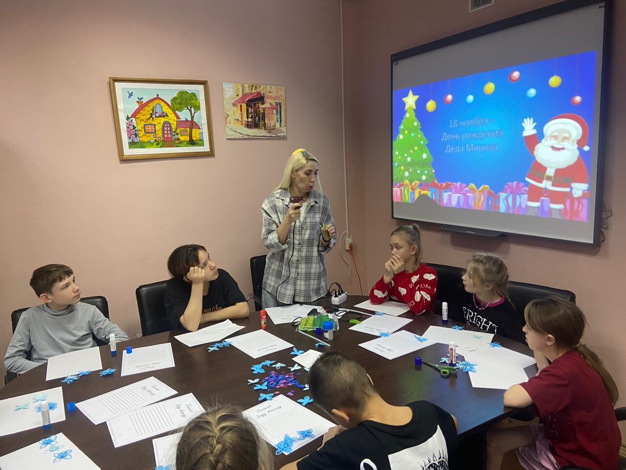 Юные читатели узнали, где родился Дед Мороз, сколько ему лет и почему его День рождения празднуют 18 ноября. Девчонки и мальчишки поучаствовали в литературной викторине. Потом сами изготовили украшения и оформили письма для любимого волшебника.