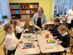 Для второклассников провели урок творчества "Самой нежной и любимой" — дети рисовали целлофановыми мешочками (да-да, необычно, но очень красиво!) и узнали историю праздника.