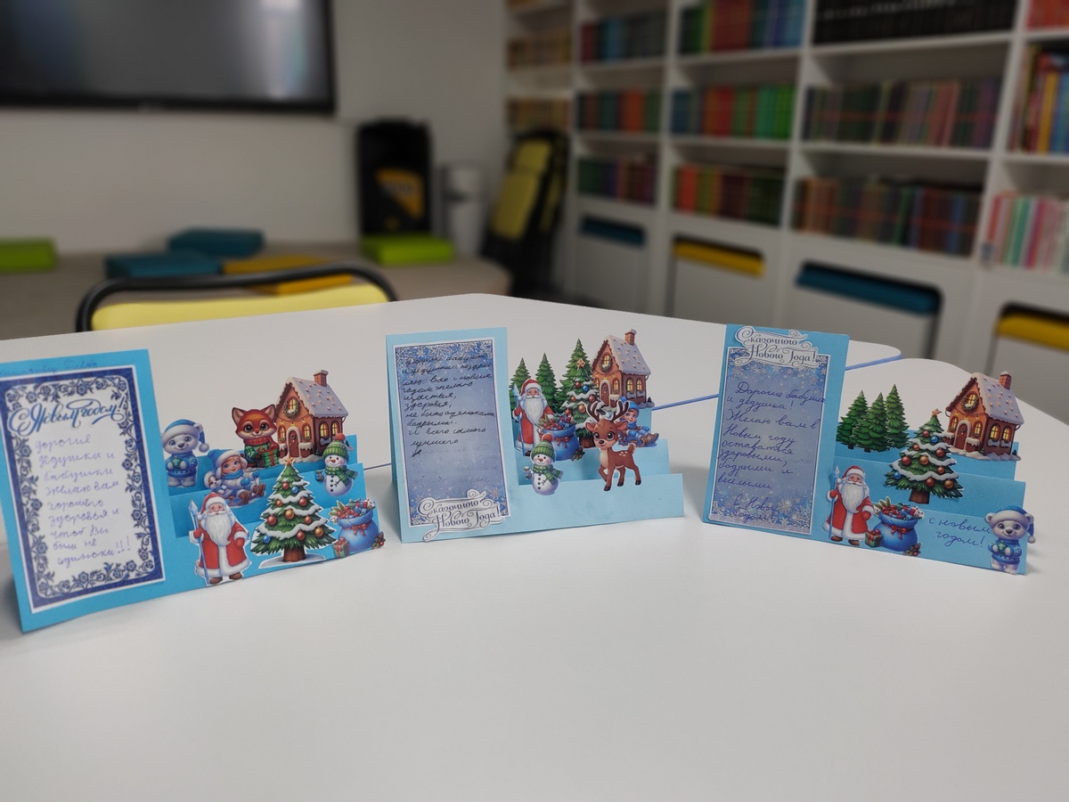 В Новый год все ждут чуда, мечтают получить подарки и поздравления. В преддверии подготовки к празднованию Нового года, сотрудник Детской библиотеки провела познавательный час с элементами мастер-класса "Новогодняя открытка для бабушек и дедушек".
