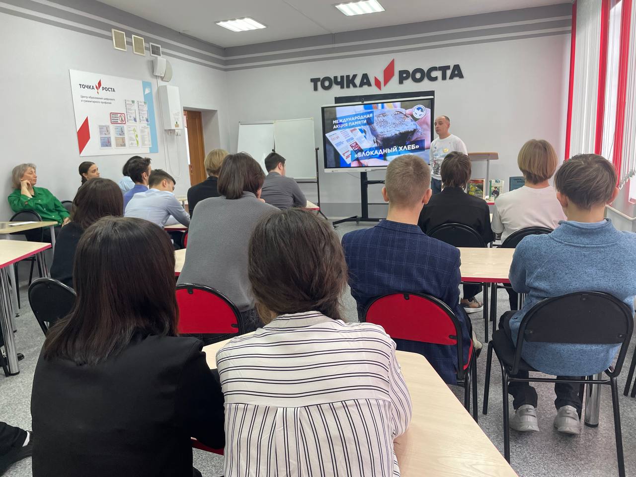 В рамках акции в МАОУ–СОШ №4 состоялся Всероссийский урок памяти «Блокадный Ленинград» для одиннадцатиклассников. Кириллов Валентин, главный библиотекарь Сектора работы с молодёжью БЭЦ, призвал ребят к сохранению исторической памяти о мужестве мирного населения в трагических обстоятельствах блокады Ленинграда.