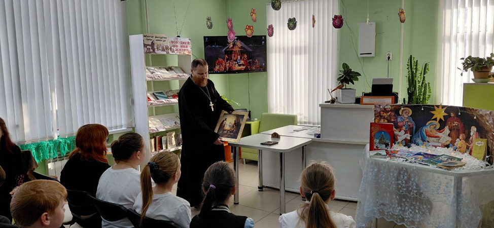 27 января в библиотеке для учащихся 6 класса МАОУ-СОШ №1 прошла духовная беседа "Христианские встречи возле вертепа".