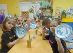 Участники с интересом слушали рассказ библиотекаря об истоках гжельской росписи, её истории, рассматривали изделия и иллюстрации гжельской посуды. Юные участники попробовали себя в роли гжельских мастеров и расписали шаблон тарелки.