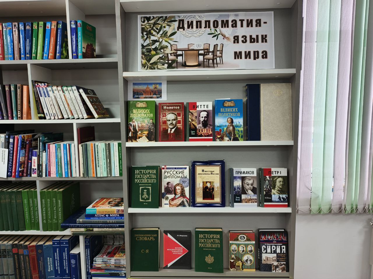 На ней представлены научно-популярные, справочные, учебные издания. Что такое дипломатия, какова история международных отношений и дипломатии СССР и России, кто из отечественных дипломатов и правителей внёс заметный вклад в дело мира. Об этом и многом расскажут читателю материалы данной выставки.