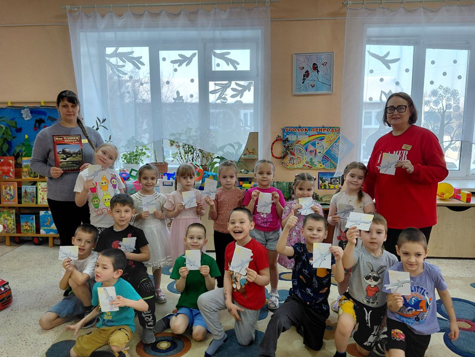 Сотрудники библиотеки-филиала №2 (Тельмана, 38) посетили детский сад "Рыбка" и провели мастер-класс "В небе остаются крылья", посвящённый Дню работников гражданской авиации.