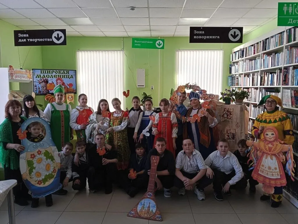 Играли, активно двигались в масленичном паровозе, танцевали, участники с азартом отгадывали загадки, вспоминали пословицы и поговорки о Масленице и блинах, участвовали в забавных конкурсах — "Напеки блины", "Продолжи пословицу", "Блинное предсказание" и "Масленичная карусель". Программа получилась насыщенной и весёлой. Также библиотекари организовали выставку и фотозону, посвящённые празднованию Масленицы.