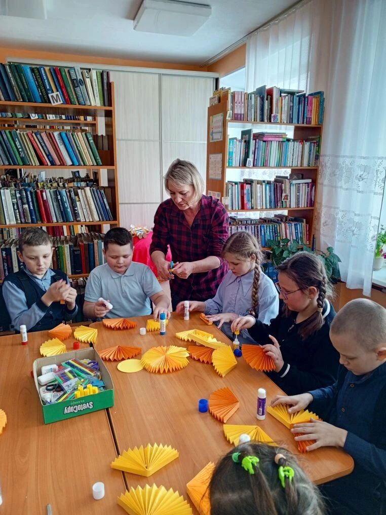 Для третьеклассников сотрудник библиотеки с. Новониколаевка провел творческий мастер-класс "Солнышко к Масленице" - ребята изготовили яркие поделки "Солнышко" из цветной бумаги и клея.