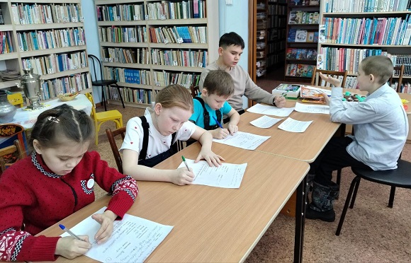 Викторину для школьников, посвященную Дню родного языка, провёл сотрудник библиотеки с. Ягодное. Ребята стали участниками спецоперации по спасению русского языка от вируса "Скудословия" — привычки заменять яркие, точные слова на маленький набор грубых и бессмысленных. Участники выполняли задания по поиску альтернатив грубым словам, боролись с эмоциями при помощи дыхательной гимнастики, искали максимально креативный выход из стрессовой ситуации с помощью негрубых восклицаний или реакций. Библиотекарь познакомила шестиклассников с искусством красивого письма — каллиграфией. Перьевой ручкой и чернилами попробовали написать свое имя. Оказалось, не так просто писать такими приспособлениями.