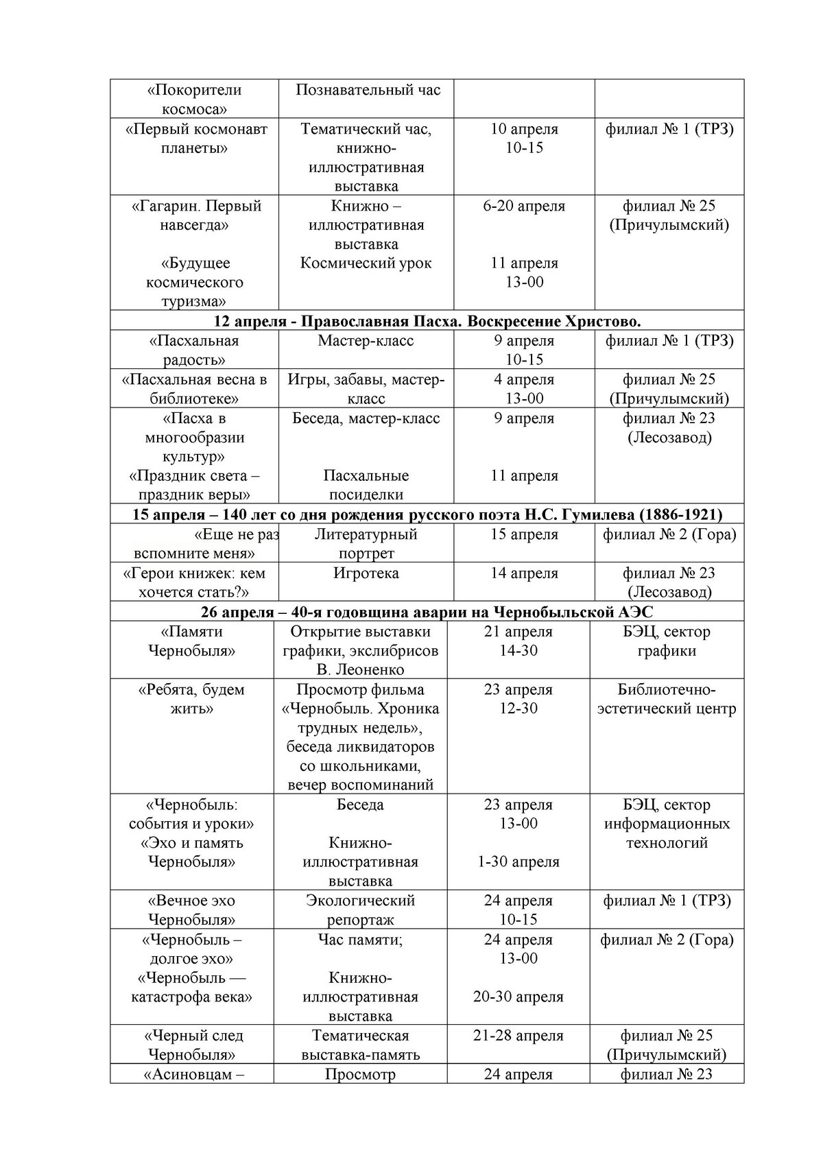 Расписание работы филиалов