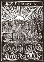 Экслибрис представляет собой изящное и символичное изображение, отражающее профессию и фамилию. Центральным элементом выступает птица соловей сидящая на ветви дерева. Эта деталь подчёркивает связь владельца с миром природы и биологическим разнообразием. Фоном служит лес, символизирующий богатство растительного мира и экологическое равновесие. Лучи солнца, пробивающиеся сквозь кроны деревьев, добавляют экслибрису светлый и оптимистичный оттенок, подчеркивая важность науки и знания в жизни человека.