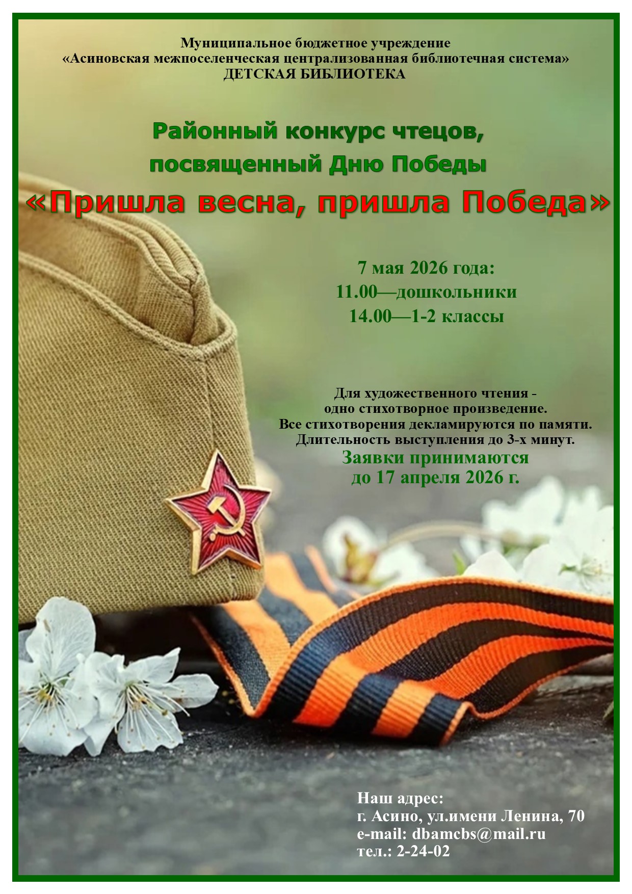 Детская библиотека объявляет о старте традиционного конкурса чтецов, посвящённого Дню Победы!