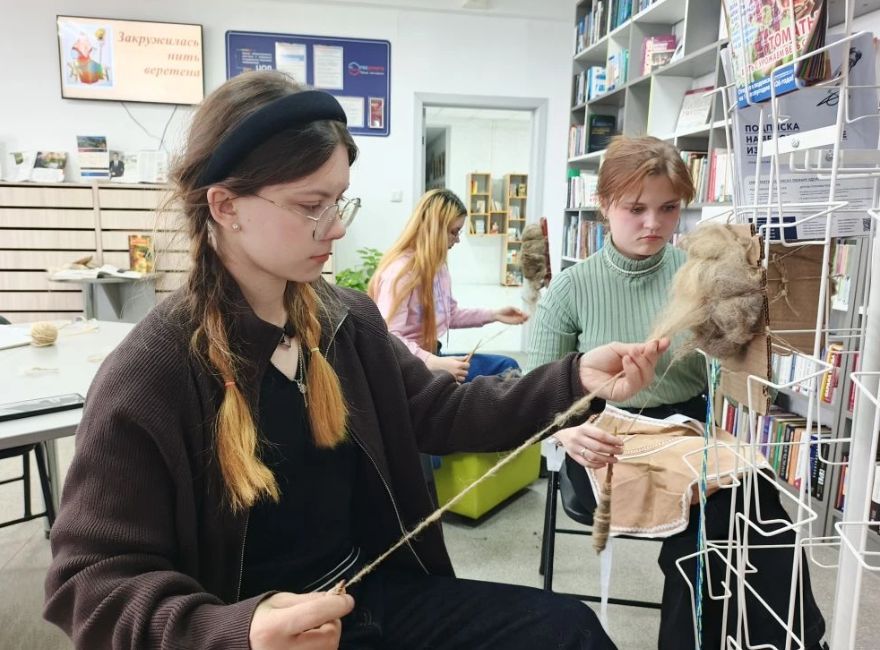11 апреля в Секторе информационных технологий прошла фольклорная программа "Закружилась нить веретена". Участники мероприятия узнали о старинном народном ремесле – прядении шерсти и его значении, с помощью мультимедийной презентации познакомились с картинами русских художников с изображением мастериц за рукоделием, вспомнили сказки, в которых присутствуют веретено и нити.