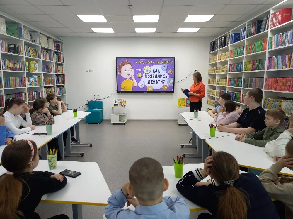 В детской библиотеке для учеников 4 класса школы №4 прошёл исторический час по финансовой грамотности "Как появились деньги".