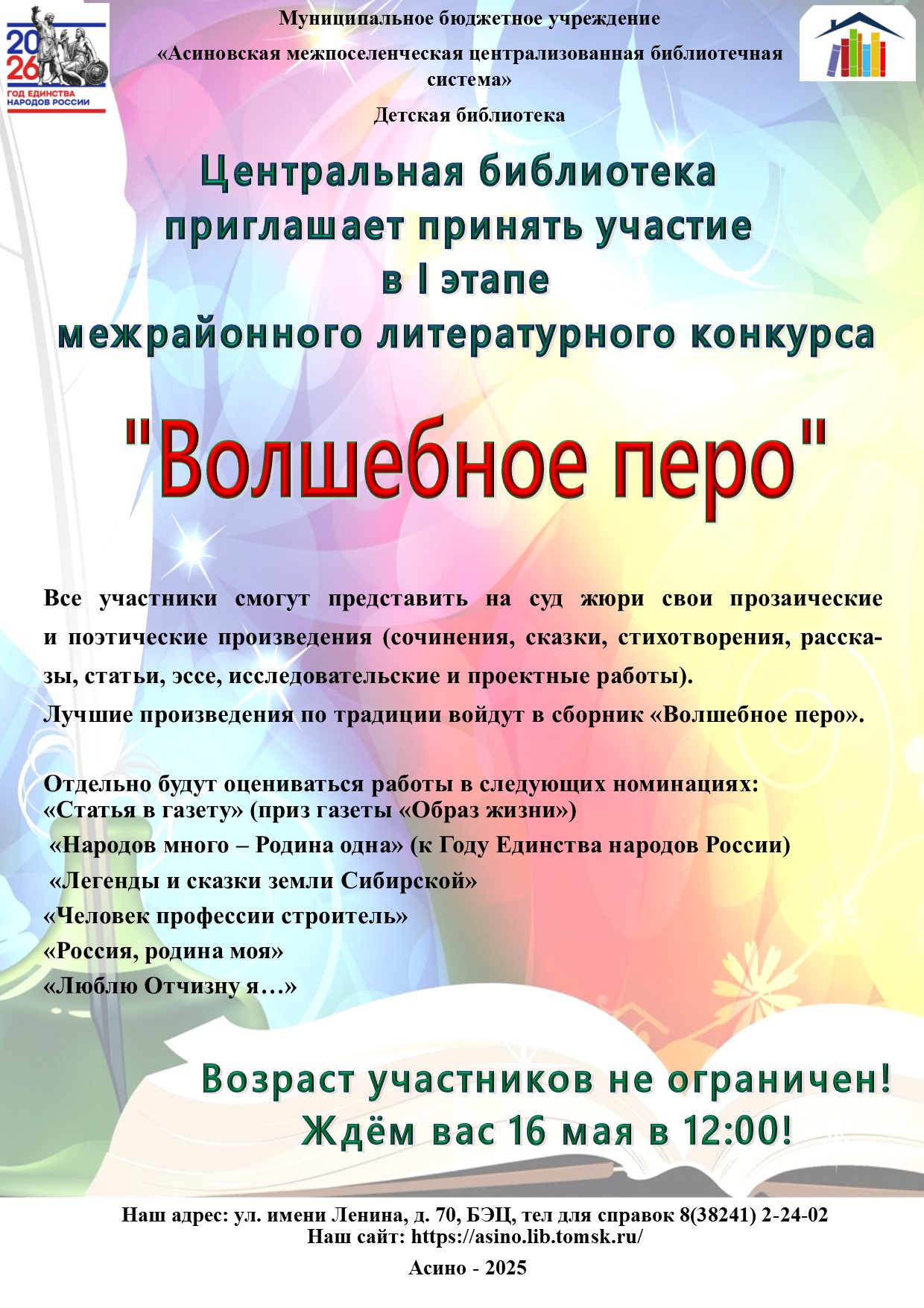 Место: ул. имени Ленина, д. 70, БЭЦ, тел для справок 8(38241) 2-24-02 (Детская библиотека)