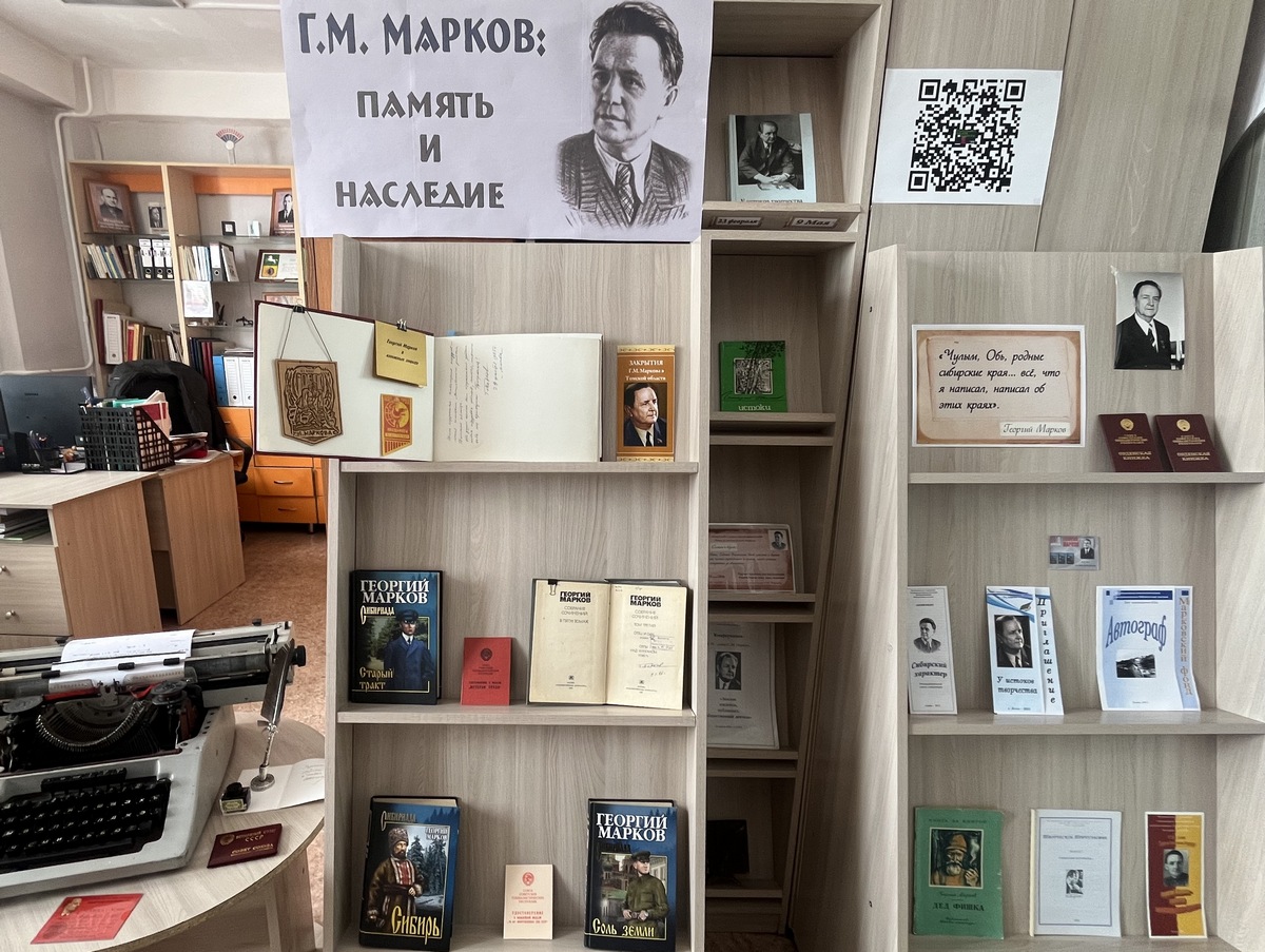 В секторе графики Библиотечно-эстетического центра действует экспозиция "Г.М. Марков: память и наследие", на которой представлены фотографии, книги, буклеты, личные вещи Г. Маркова из фонда библиотеки.