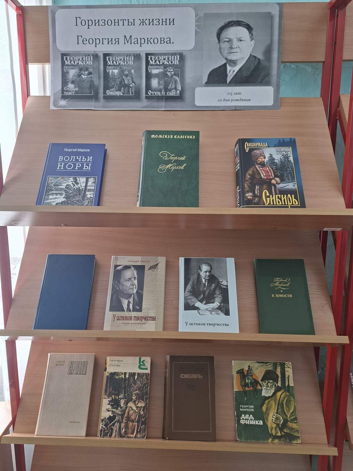 В библиотеке с. Новиковка работает книжная выставка "Народный писатель из Сибири", посвящённая 115-летию со дня рождения Георгия Мокеевича Маркова.
